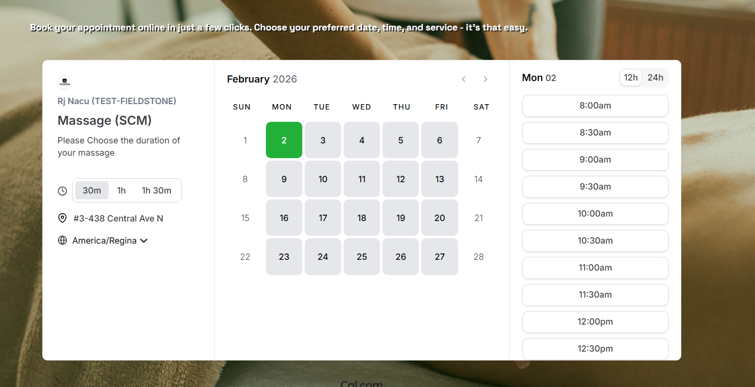 I added a scheduling system to the massage website I designed that allows booking online. It has a smart feature that does not allow double-booking and it also sends out gmail notifications about the booking time and date that also includes a rebook and cancel links on it.
